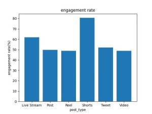 Using a compelling chart analyzing global social media content engagement rates, this project demonstrates how students transformed code into actionable insight. The visualization clearly shows that short videos (Shorts) and live streaming (Live Stream) dominate user engagement, with rates of 80% and 62% respectively, far surpassing traditional posts at 50%.