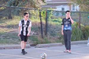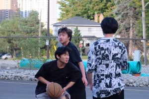 迎着风叫嚣着挤满了的通道出去,在阳光照得更透彻的地方往左拐,篮球架间是色彩洋溢的青春朝气。棕色皮质的篮球从手中向上抛出激烈的弧线,猛然打在篮筐上,沿着亮橙色的细线滚过半圈后从中掉下,在地面上一跳后明快的弹开。还有踢足球的男生,在篮球场旁挥洒汗水。