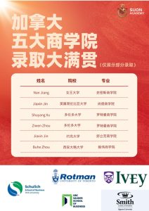 在商科领域,苏安学子实现了加拿大五大顶尖商学院的”大满贯”:多伦多大学罗特曼商学院、西安大略大学毅伟商学院、约克大学舒力克商学院、女王大学史密斯商学院和UBC尚德商学院的录取通知书纷至沓来。这些商学院各具特色:罗特曼是加拿大投行人才的摇篮;毅伟商学院的案例教学法享誉全球;舒力克的会计专业CPA通过率常年第一;史密斯商学院的本科项目排名全加冠军;尚德商学院则凭借其亚太商业研究的优势成为跨国企业的招聘热点。